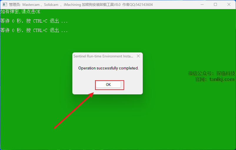 提示:安装完成后,点击右上角的【X】关闭窗口。