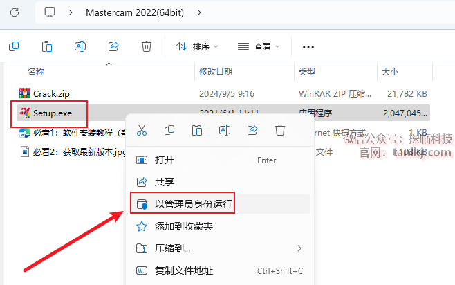 打开解压后的文件夹,右键程序【Setup】,点击【以管理员身份运行】。