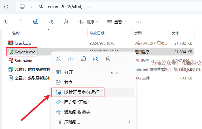 右键解压出来的文件【Keygen】,点击【以管理员身份运行】。