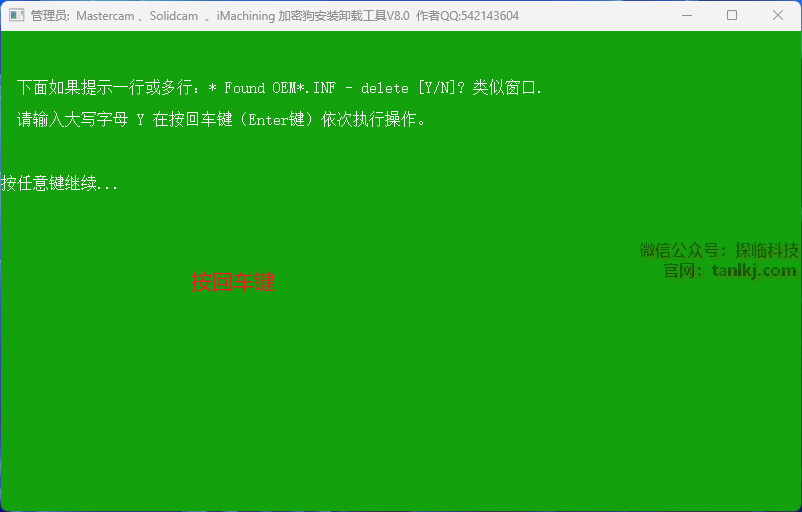 提示:成功字样后,按回车键。