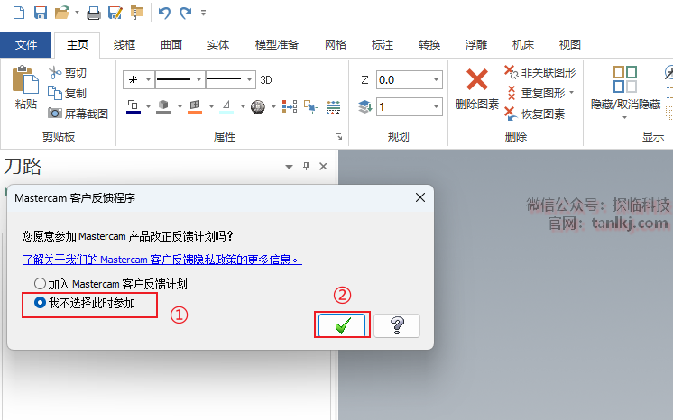 ①勾选【我不选择此时参加】;