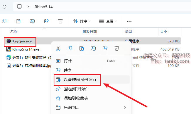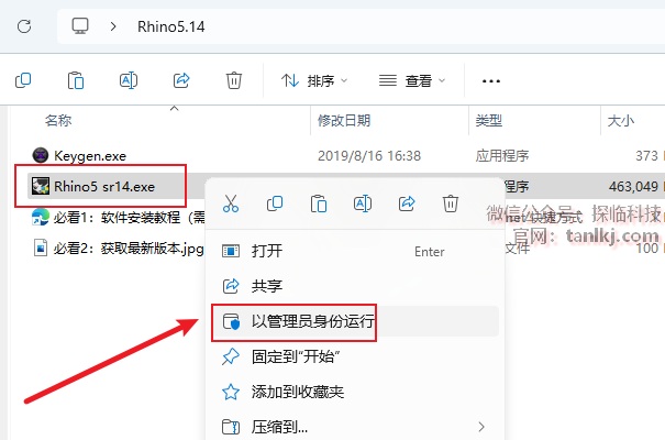 打开解压后的文件夹,右键程序【Rhin5 sr14】,点击【以管理员身份运行】。