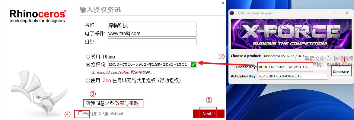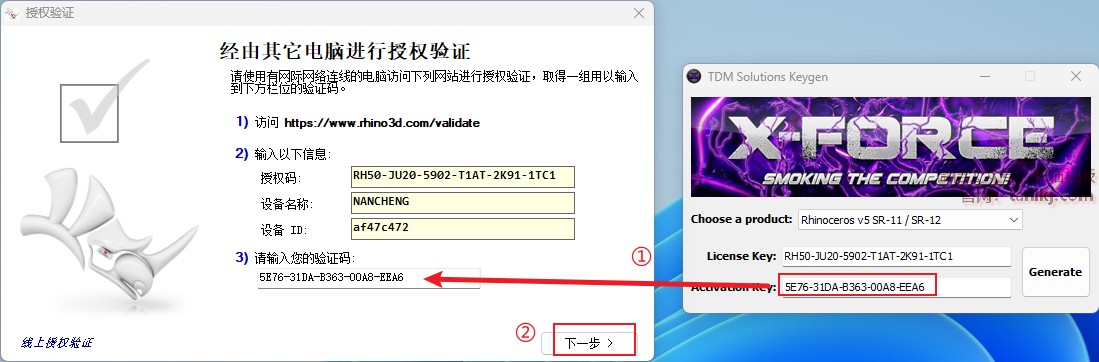 ②复制License Key框中的内容到授权码框中(【Keygen】程序先不关闭,后面还有用。);