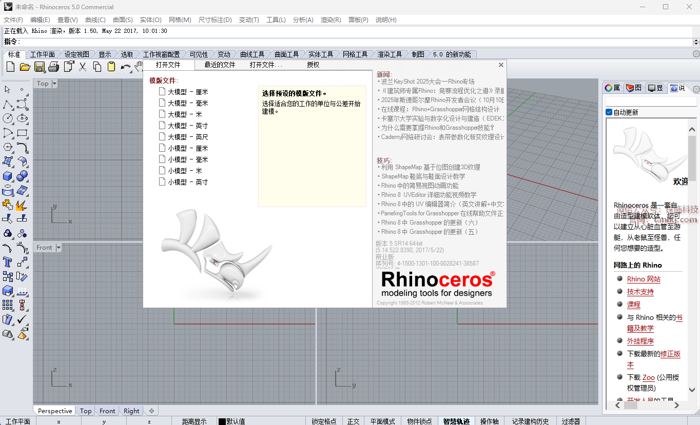 在桌面,双击运行软件【Rhinoceros 5(64-bit)】。
