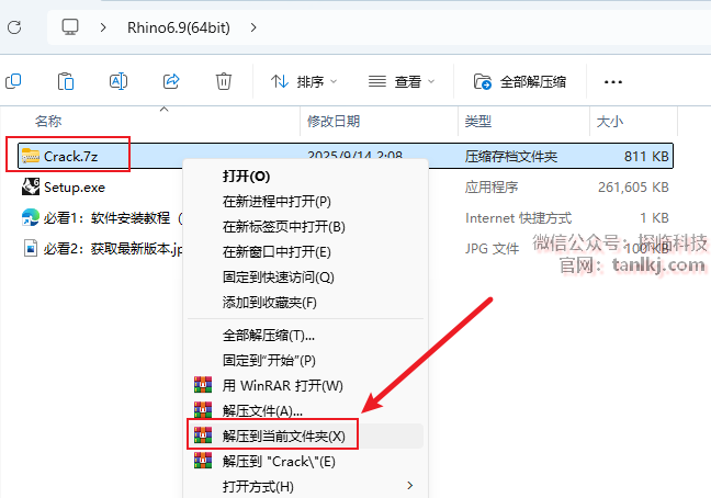 打开之前解压后的文件夹,解压文件【Crack】到当前文件夹。