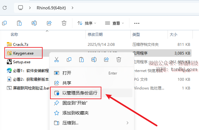右键解压出来的程序【Keygen】,点击【以管理员身份运行】。