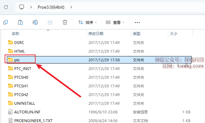 回到解压后的文件夹内,双击打开文件夹【ptc】。