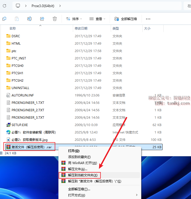 回到之前解压后的文件夹中,解压文件【激活文件】到当前文件夹。