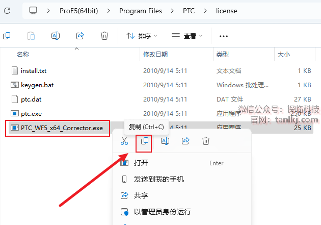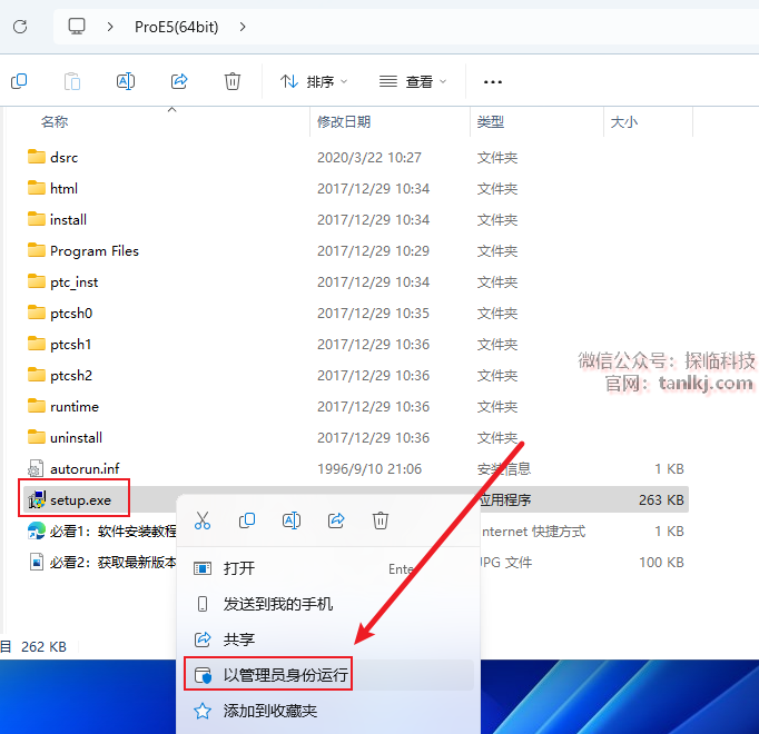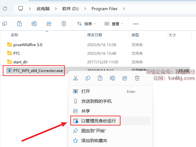 右键刚刚粘贴的文件【PTC_WF5_x64…】,点击【以管理员身份运行】。