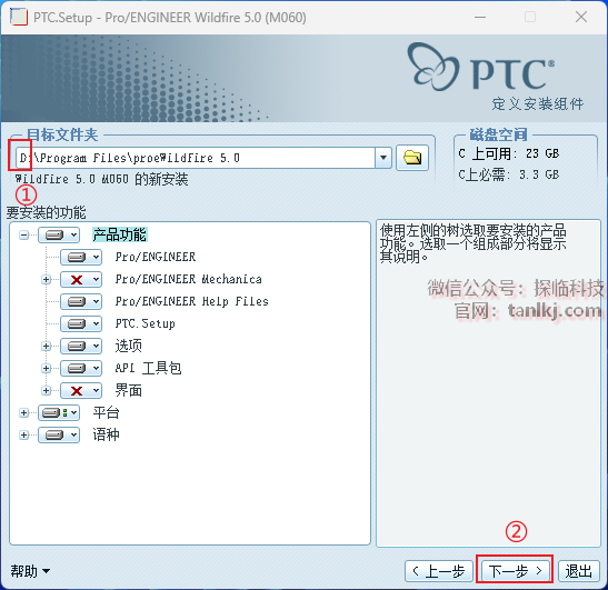 ①如需更改软件安装位置,可将C改成其他盘符,这里改成D(不要修改其他任何字符,否则会导致无法安装);