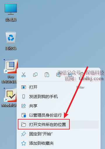 在桌面,右键软件【Pro ENGINEER】,点击【打开文件所在的位置】。