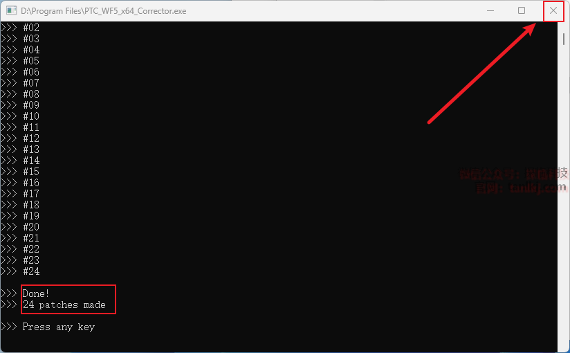 提示:Done!24 patches made后,点击右上角的【X】关闭程序。