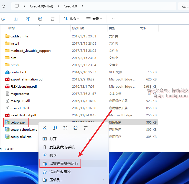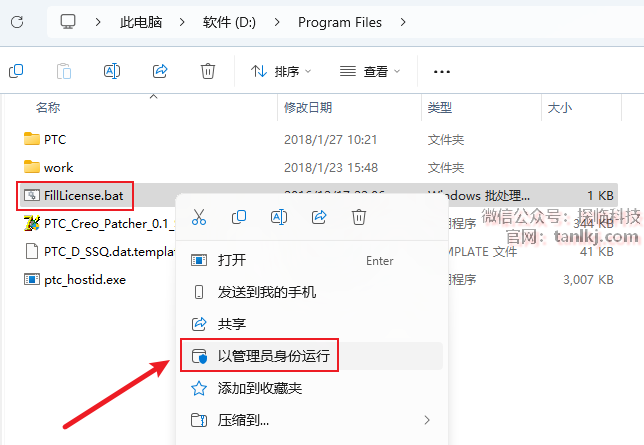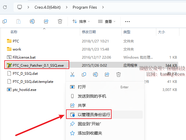 右键程序【PTC_Creo_Patcher…】,点击【以管理员身份运行】。
