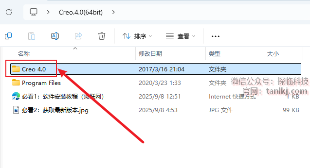 回到之前解压后的文件夹,双击打开文件夹【Creo 4.0】。