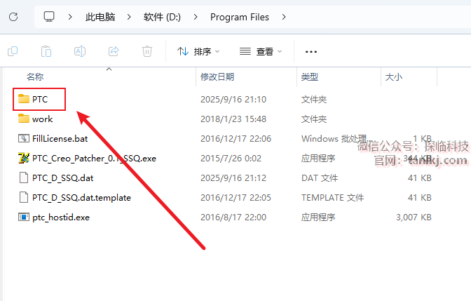 回到生成文件【PTC_D_SSQ】的文件夹中,双击打开文件夹【PTC】。