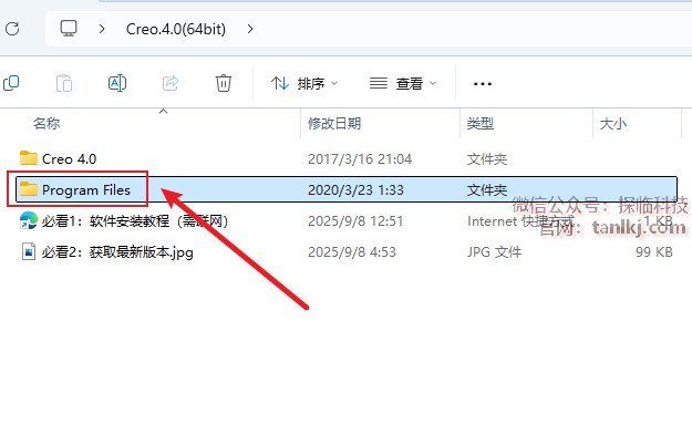 回到之前解压后的文件夹中,双击打开文件夹【Program Files】。