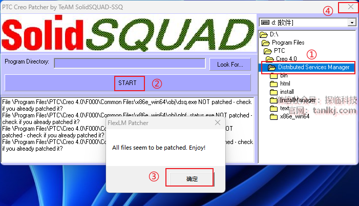 ①选择文件夹【Distributed Services Manager】路径位于:D:\Program Files\PTC\Creo 4.0\Distributed Services Manager;
