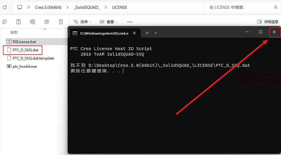 会生成文件【PTC_D_SSQ】,点击【X】关闭窗口。