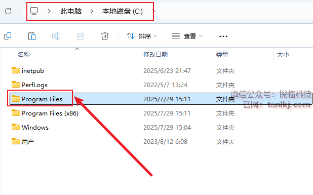 打开电脑C盘,双击打开文件夹【Program Files】。