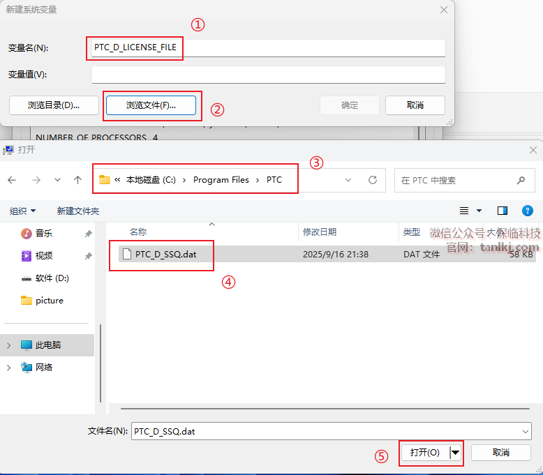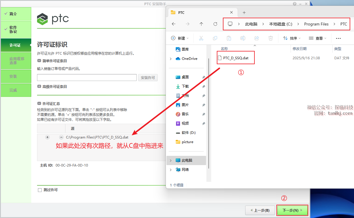 ①如果此处没有此路径,就从文件夹【PTC】中拖进来;