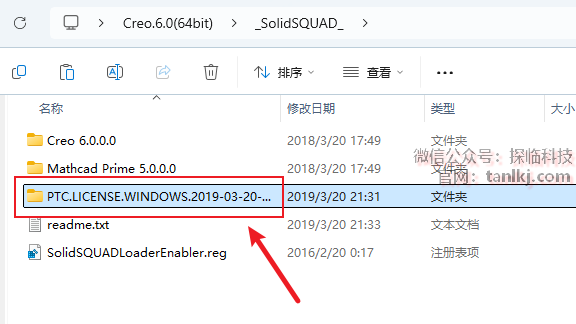 双击打开文件夹【PTC.LICENSE…】。