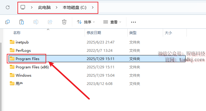 打开电脑C盘,双击打开文件夹【Program Files】。
