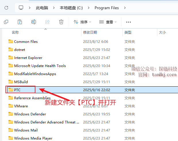 新建一个文件夹【PTC】,并双击打开。