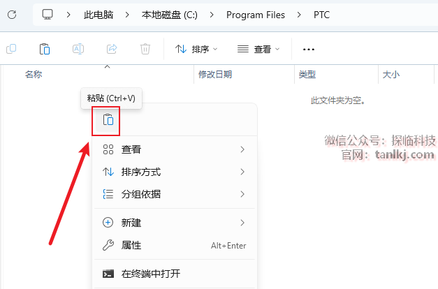 点击上方地址栏中的【PTC】。
