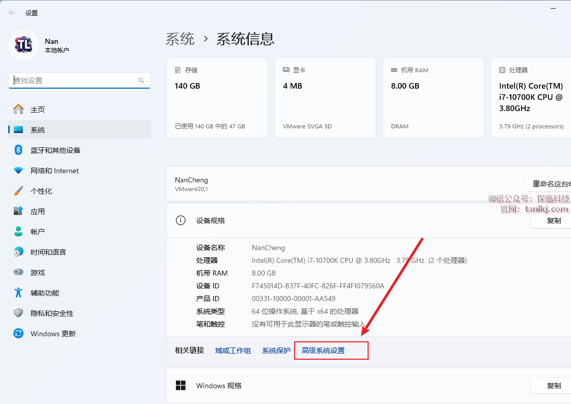 点击【高级系统设置】。