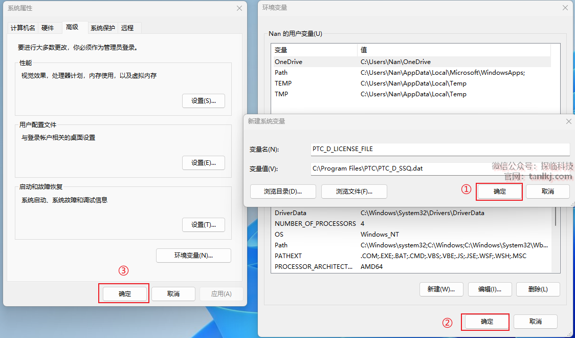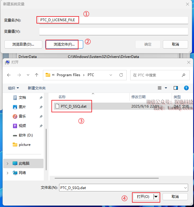 ①变量名输入:PTC_D_LICENSE_FILE