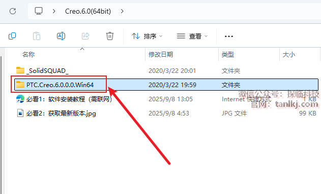 回到之前解压后的文件夹中,双击打开文件夹【PTC_Creo6.0.0.0_Win64】。