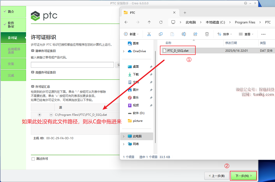 ①如果此处没有此路径,就从文件夹【PTC】中拖进来;