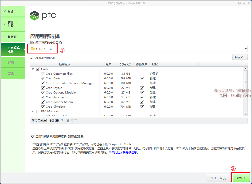 ①直接输入安装路径即可修改默认安装位置;