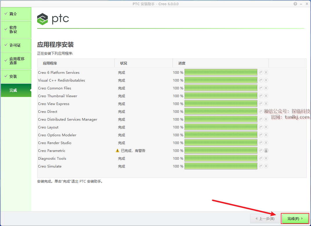 安装完成后,点击【完成】。