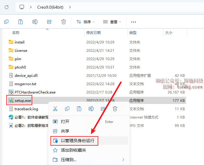 打开解压后的文件夹,右键程序【setup】,点击【以管理员身份运行】。