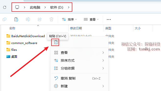 打开电脑D盘(或其他位置),粘贴刚刚复制的文件。
